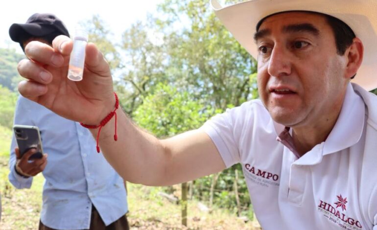 Pachuca, Hgo, 14 de abril de 2026.- Con la finalidad de fortalecer la infraestructura hidroagrícola en la entidad, la Comisión Nacional del Agua (Conagua), a través de su Dirección Local Hidalgo, a través del Subprograma de Unidades de Riego, llevó a cabo la instalación del primer sistema solar sin respaldo para alimentación de la bomba para riego en el estado para beneficiar a decenas de productores en una superficie de 95.3 hectáreas en la unidad de riego El Yolo, en el municipio de Acatlán.